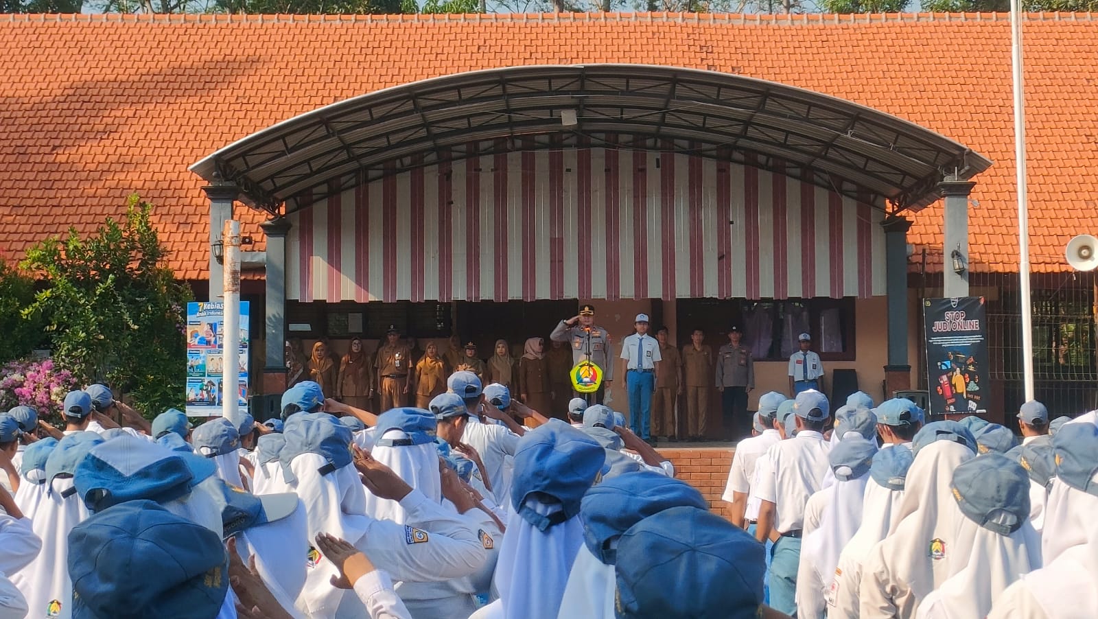 Mojokerto – Kapolsek jajaran Polres Mojokerto serentak memimpin pelaksanaan upacara bendera hari Senin di berbagai sekolah di wilayah Kabupaten Mojokerto.